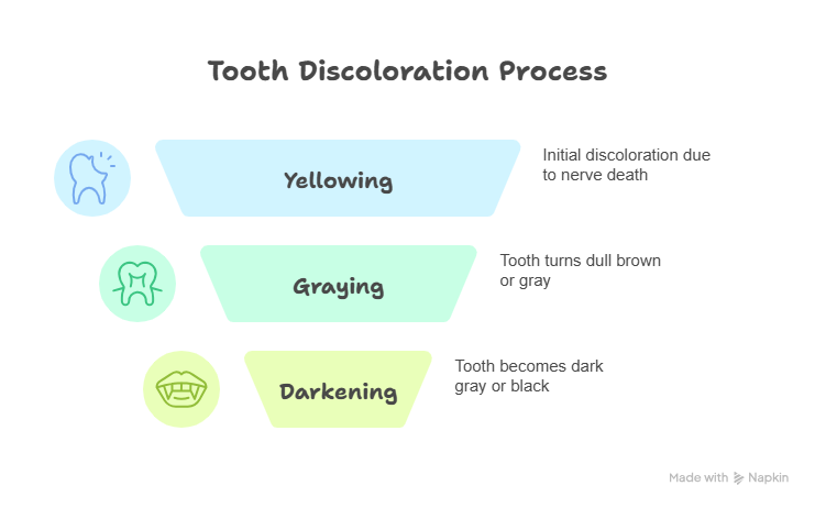1. Discoloration (Tooth Turning Yellow, Gray, or Black)